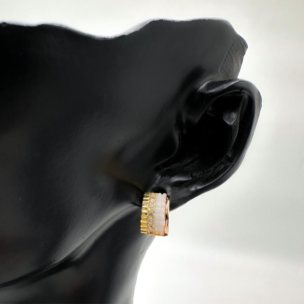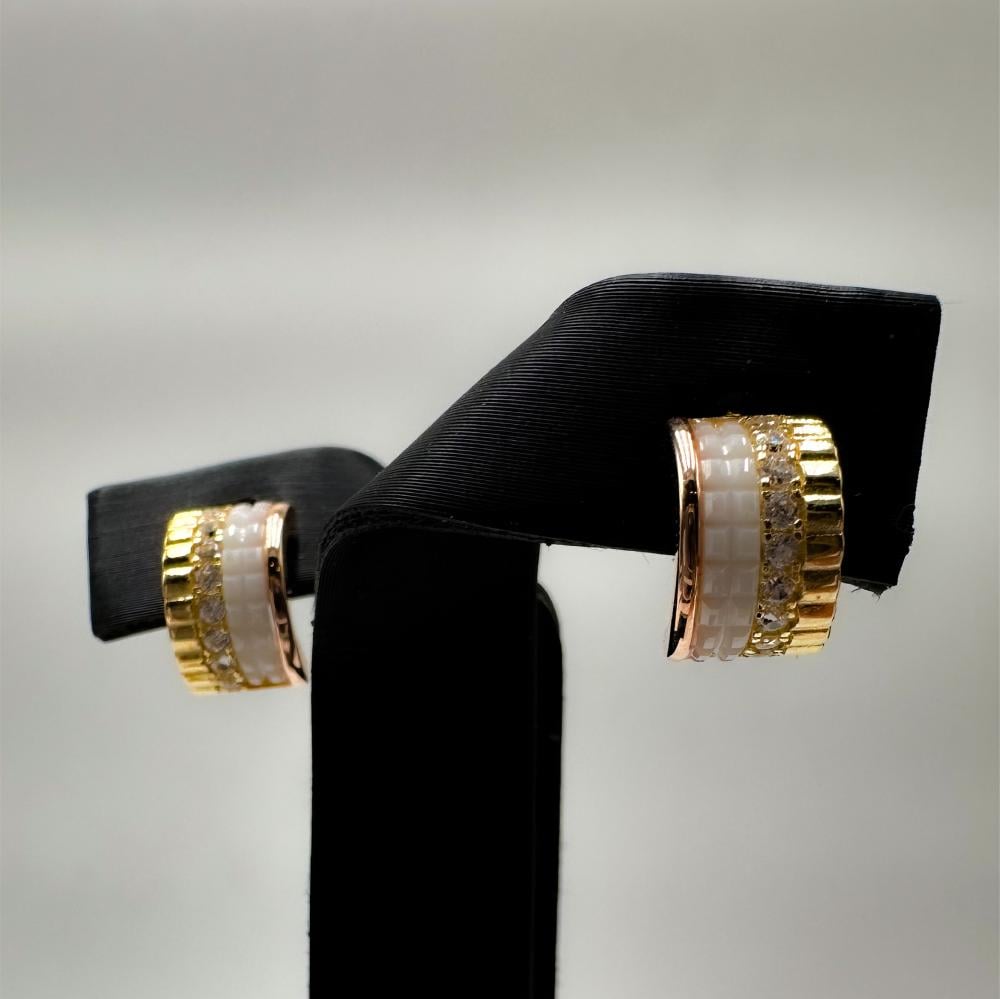 صُنع من ذهب أصلي عالي الجودة يمنح الحلق لمعانًا يدوم ومتانة تضمن استمراريته مع مرور الوقت. حلق من ذهب الروز مع الذهب الأصفر والمينا الأبيض مرصعة باحجار الزيركون.