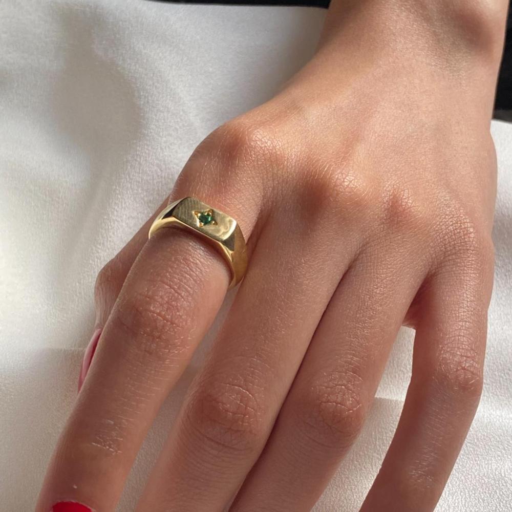 يجمع تصميم هذا الخاتم الذهبي بين متانة الذهب الأصلي عيار 18 وجودة الزركون، مما يضمن متانة تدوم طويلاً، بينما يضفي الزركون الأخضر لمسة من الجاذبية والتميز.