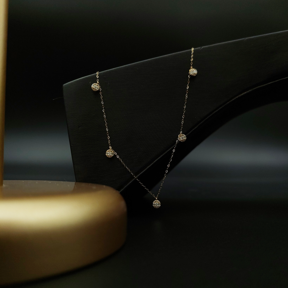 خلي الضوء يلعب مع كل حركة من حركاتك مع سلسال كريستال مصمم بعناية، والمزيّن بـ كرات كريستال براقة تضيف إشراقًا خاصًا لعنقك.